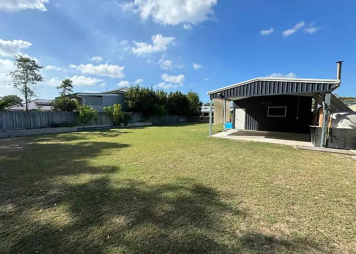 Die Villa Beach Shed With Pizza Oven Toogoom verfügt über eine Terrasse mit Blick aufs Meer und ist 31 Autominuten vom Flughafen Hervey Bay entfernt gelegen.